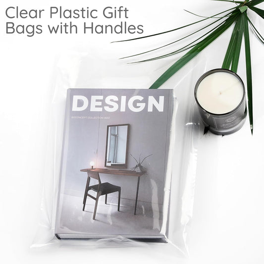 100 Clear Plastic Bags With Handles 9"x12" Merchandise Bags 1.5Mil Thick Glossy Retail Bags and Shopping Bags For Small Business Boutique Bags and Clear Gift Bags With Handles